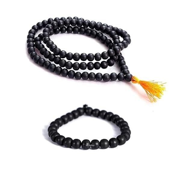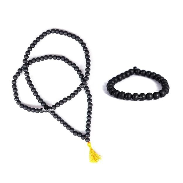 100% Natural Original Unpolished Karungali Mala 8mm & Bracelet 8mm Combo | Wood