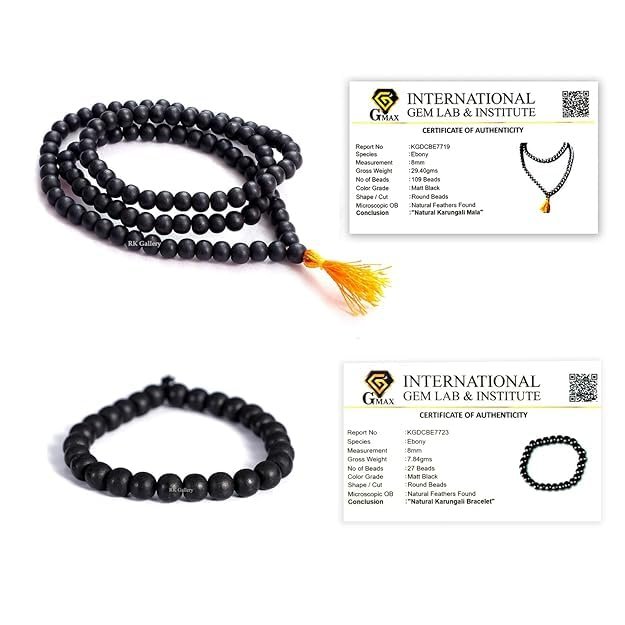 - ЁЯФ╣ Natural Original Karungali Malai by Lab Certified. Mala Bead Size – 8mm, Height – 38 CMs (15 Inch.), Weight : 28g approx. Bracelet Bead Size – 8mm, Height – 7 CMs ( 2.7 Inch.), Weight : 7g approx Provided with Certificate.
