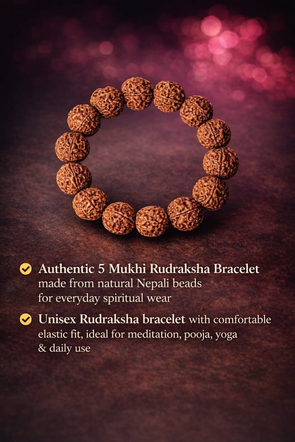 Divine Anandam® Certified 5 Mukhi Rudraksha Bracelet for Men & Women | Original Nepali Beads for Positivity, Stress Relief & Aura Protection | Yoga, Meditation & Wellness Wear | Spiritual Jewelry Bracelet