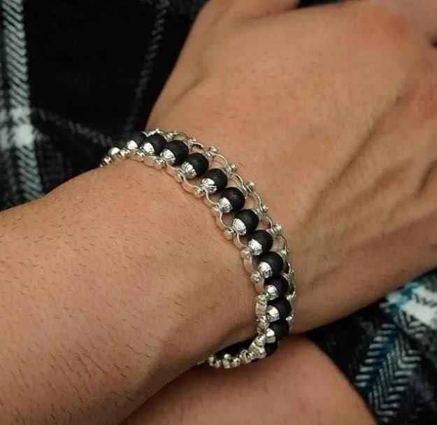 Item type name – Karungali Beads Bracelet with Silver-Tone Finish