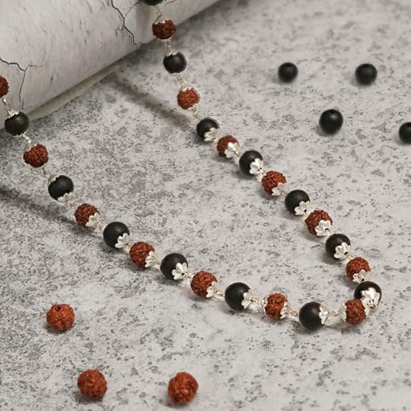 Karungali & Rudraksha Mala | Silver Plated 54 Beads Spiritual Mala | Protection from Negativity & Evil Eye