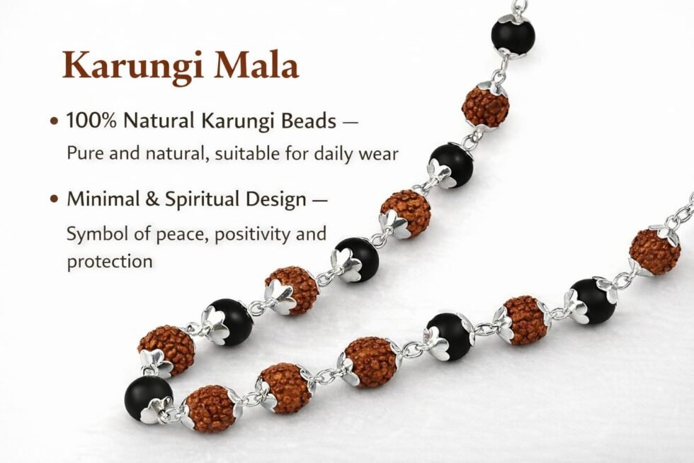 Karungali wood is known for its ability to absorb negative energies and promote positivity, while Rudraksha beads are revered for enhancing peace, focus, and spiritual strength. Together, they create a powerful combination that supports emotional balance, inner calm, and spiritual growth.