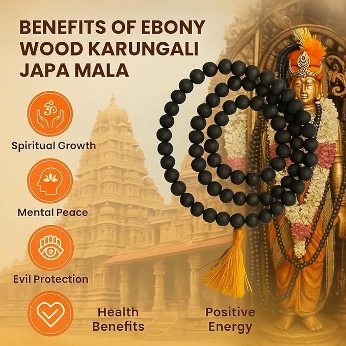 • 100% Natural Ebony Wood (Karungali) Beads тАУ Lab Tested, Crafted from authentic, lab-tested Karungali (Ebony Wood) for purity and energy alignment. Each 108-bead mala ensures maximum spiritual benefits and durability for long-term use.