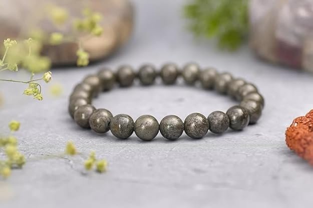 Pyrite Bracelet Money Magnet Bracelet Natural Gemstone Chakra Reiki Healing Jewelry for Men & Women, Bead Size 8 mm, Color Golden, Lab Certified